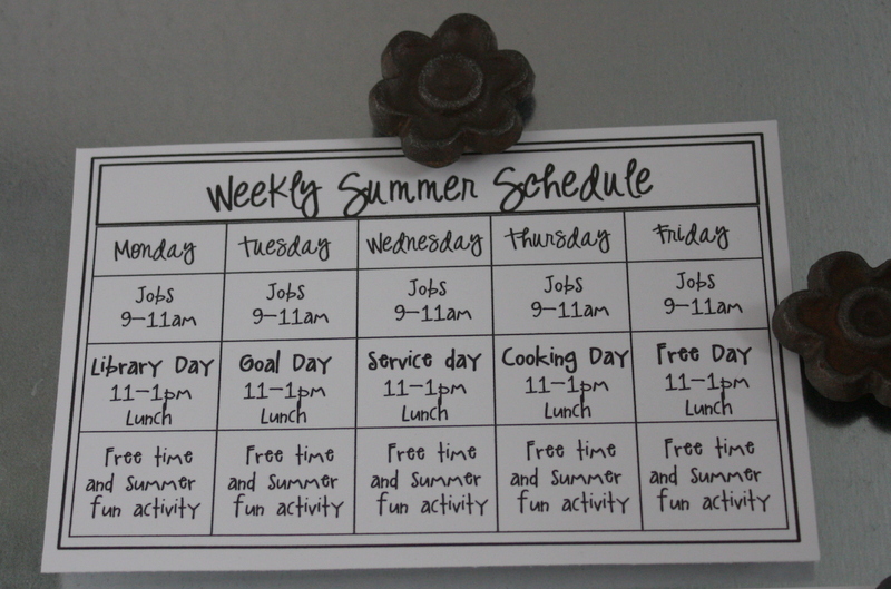 This is the schedule we have used in the past and I'm going to continue it this summer. They will still have "areas" that they will have to clean each day for their jobs along with reading, writing and practicing their instruments. Here is a post I did a few years ago that explains more about it.